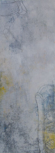 Alle meine Stühle 142004, Acryl, Bleistift auf Holz, 15 x 40 cm