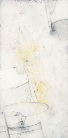 Alle meine Stühle 182004, Acryl, Bleistift auf Holz, 15 x 30 cm