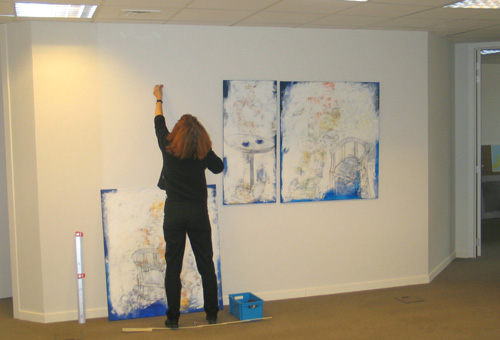 Hängen der Ausstellung im Büro der FTA, Brüssel, 2005